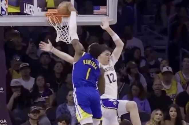 首节开打,里夫斯后仰中距离抬手就有,接着双撤步超远三分再中,开场连取5分,湖人开局5-0领先勇士。格林弧顶被放空,‘方圆三米’内无人防守,面对大空位三分出手,直接出现三不沾,有点招笑了。八村塁和波斯特互飚三分,库明加强突篮下也得手,勇士打出小高潮追平比分。随后八村塁彻底打开状态,三分强投再中后,连续空切接球上篮得手,一人连拿7分,湖人重新领先到10分。威尔-理查德强攻分球,杰克逊-戴维斯空切接球暴扣得手,小佩顿加速接球反手上篮再中,首节打完,勇士24-30依旧落后湖人6分。